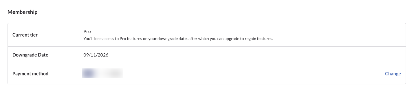 If you cancel before your membership is set to expire, you will see a new date in your membership details called the “Downgrade date”. This will be when your current tier benefits end.